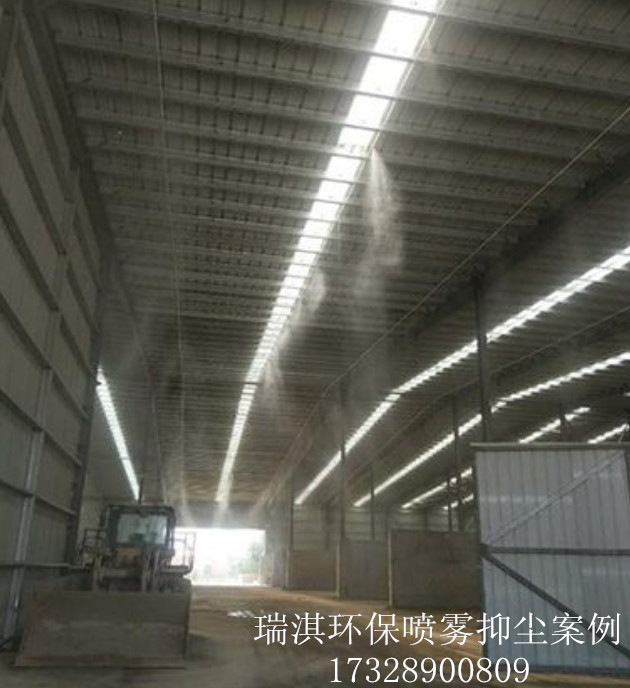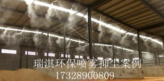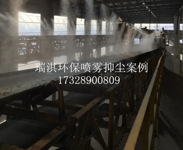 微雾抑尘系统利用超高压把水雾化为10微米以下的水雾,在料仓上方形成雾团覆盖矿粉、坭粉上空,这样在物料起尘的时候粉尘完全被雾团捕捉、润湿,粉尘与水雾充分结合,并且逐渐加大,在重力的作用下落到地面。
