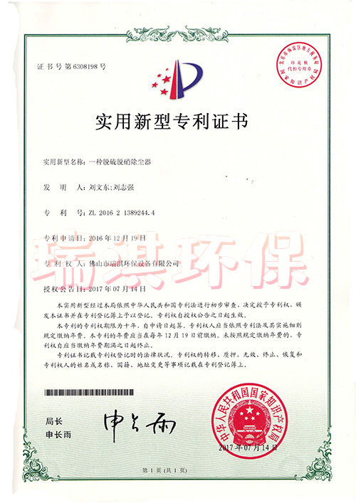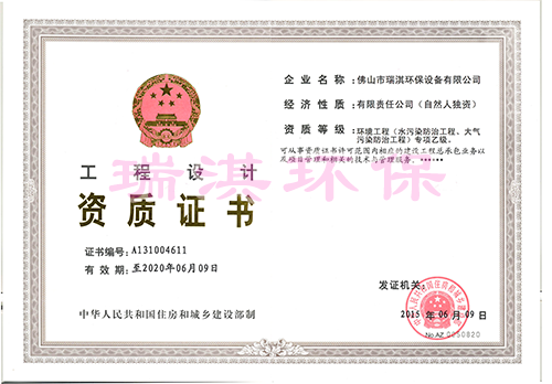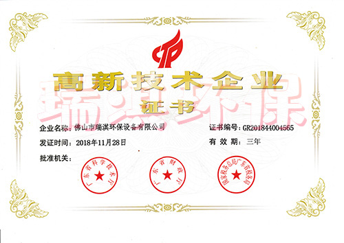 佛山市瑞淇环保设备有限公司2016年通过ISO9001《质量管理体系认证》;