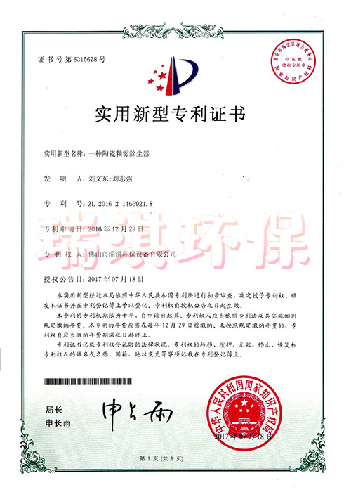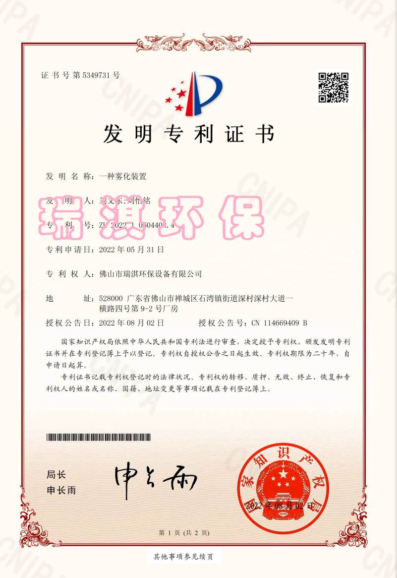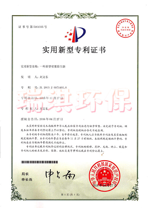 公司针对特殊行业环境污染问题,研发出一系列的产品,申请多项“发明专利”和“实用新型专利证书”。
