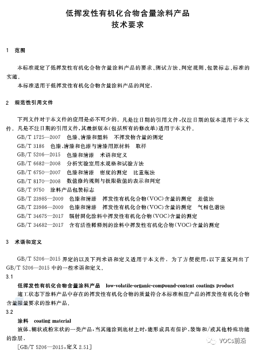 低挥发性有机化合物含量涂料产品技术要求