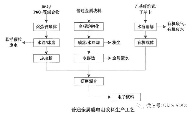 电阻浆料主要由导电相(功能相)、黏结相(玻璃相)和有机载体三部分组成。生产废气中的主要污染物为VOCs 、粉尘。