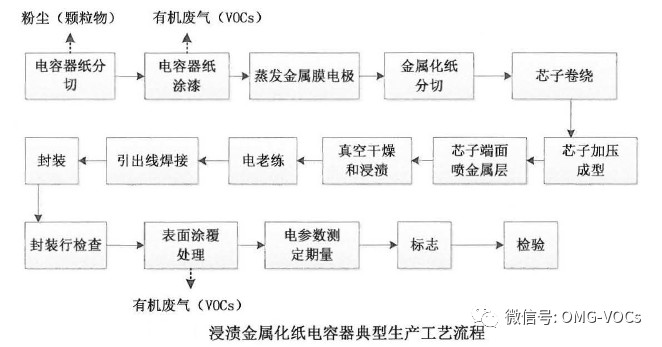 有机介质电容器纸涂漆、电容器表面涂覆处理时有VOCs废气产生。