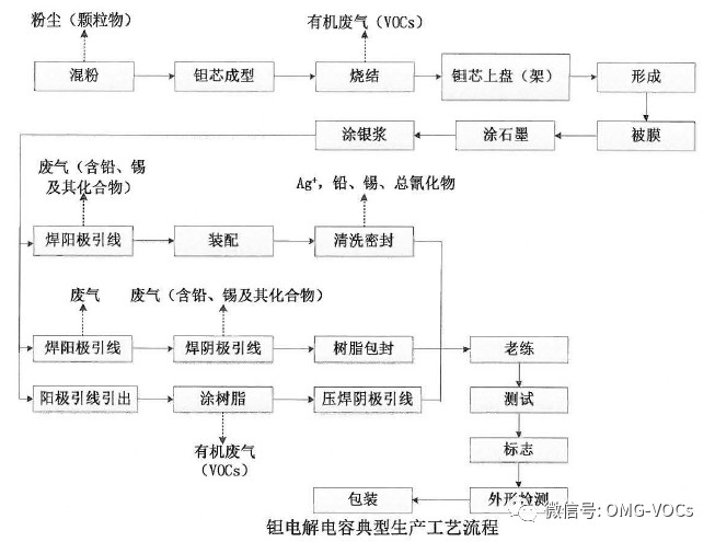 钽电解电容器的烧结过程与焊阳、阴极引线时有VOCs废气产生。