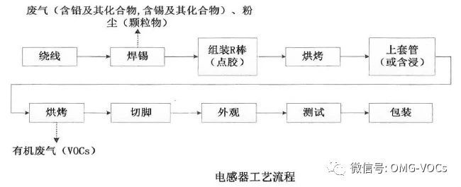 电感器在材料准备时会有VOCs产生,包括无水乙醇、丙酮、少量二甲苯等; 焊锡过程有废气与粉尘产生。