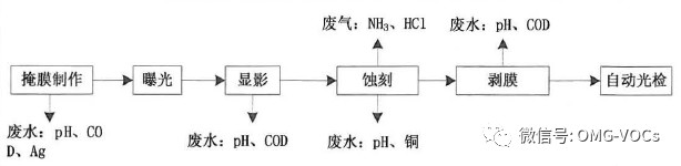 有机废气主要来源于光刻、显影、刻蚀及扩散等工序,在这些工序中要用有机溶液(如异丙醇)对晶片表面进行清洗,其挥发产生的废气是有机废气的来源之一: 同时,在光刻、刻蚀等过程中使用的光阻剂(光刻胶)中含有易挥发的有机溶剂,如醋酸丁酯等,在晶片处理过程中也要挥发到大气中,是VOCs废气产生的又一来源。