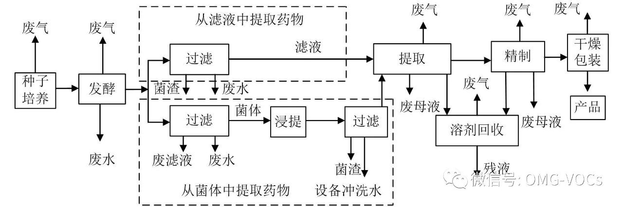分离提取精制等生产工序产生的有机溶媒废气(如甲苯、乙醇、甲醛、丙酮等),是主要的有机废气污染源。