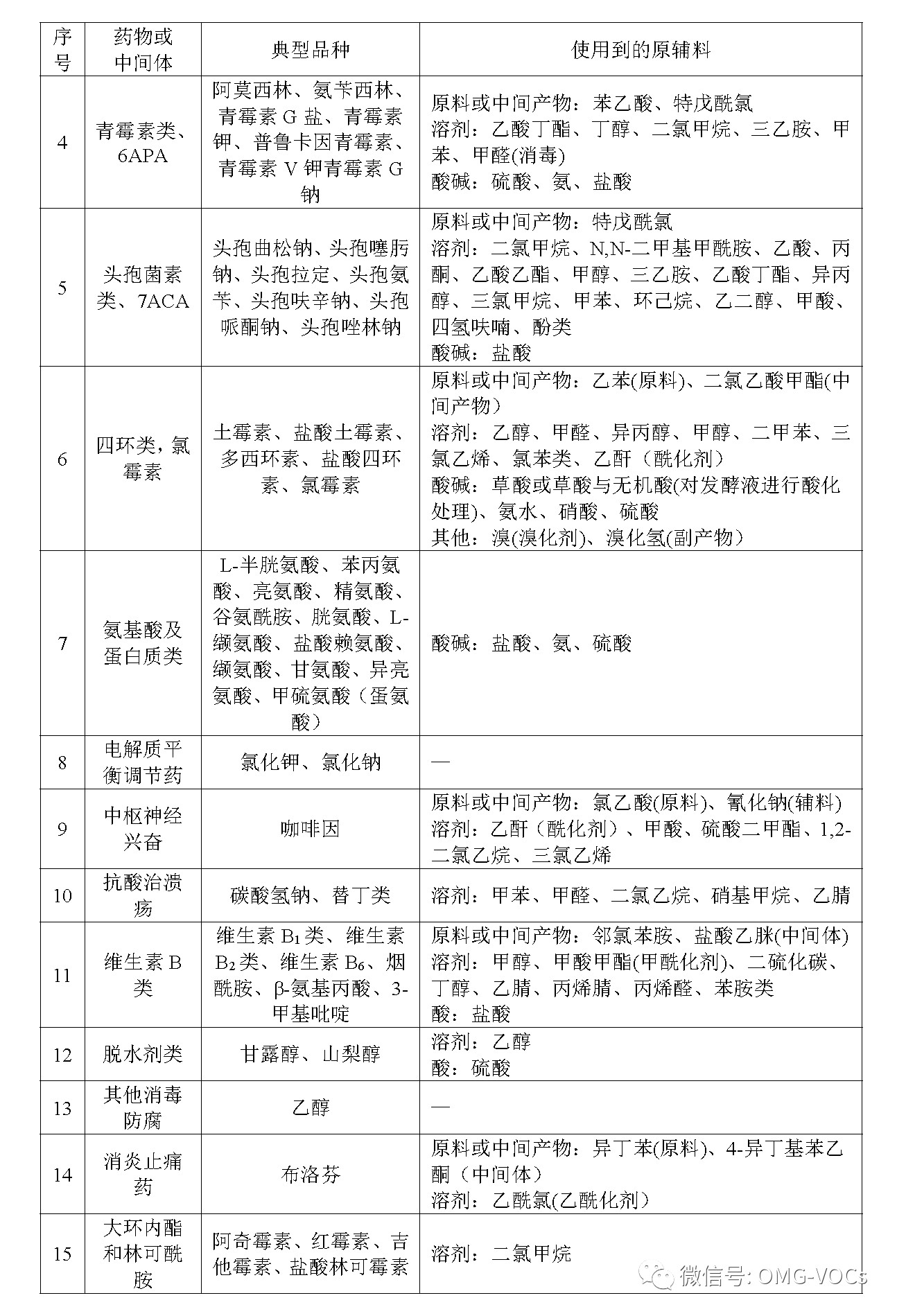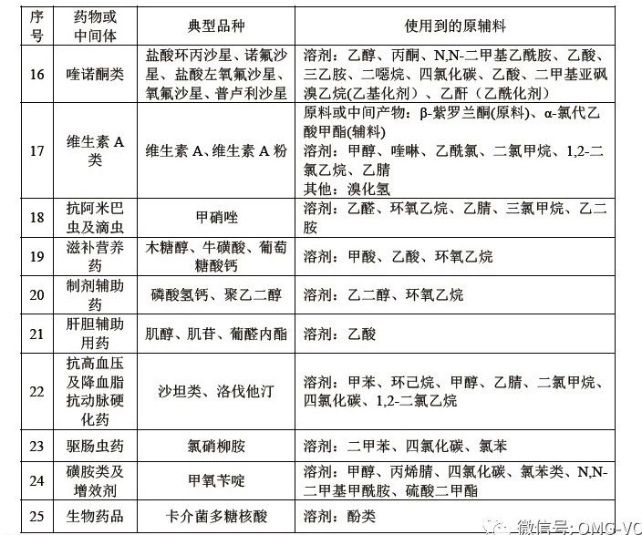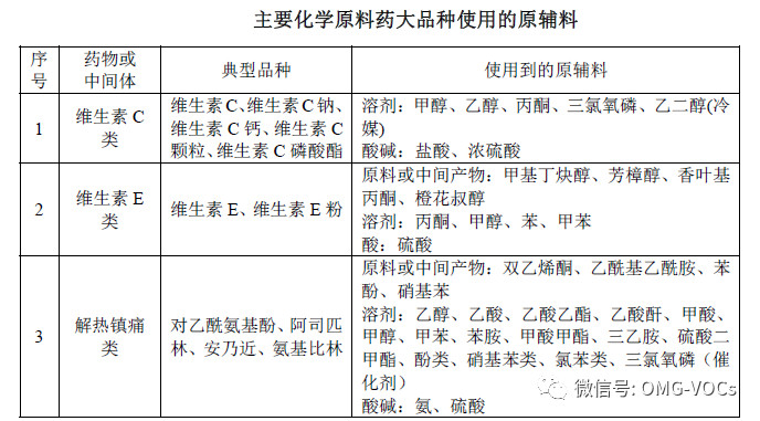 制药工业大气污染物主要来源于化学原料药的生产过程,而其前20大品种化学原料药产量占24大类化学原料药总产量的80%以上。因此,控制前20大品种所涉及到的挥发性物质有重要作用。