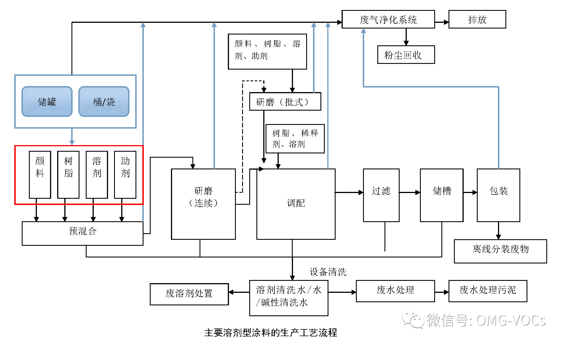 与溶剂型涂料相比,水性涂料主要是用水代替了大量溶剂。由于用水代替了溶剂,因此洗涤过程通常使用水,则增加了水的回用过程,但减少了溶剂使用。