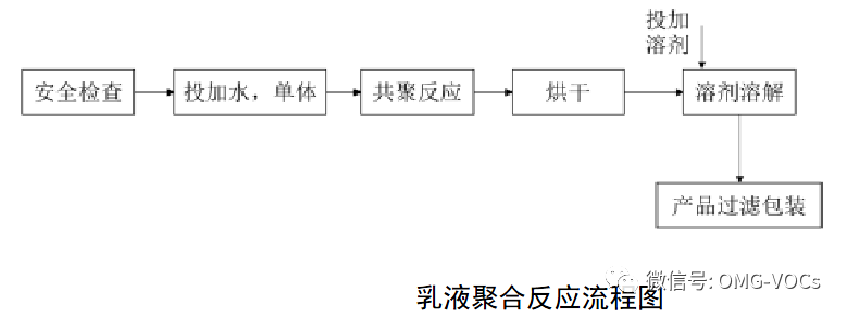 水基胶黏剂的生产工艺通常是采用乳液聚合法生成,即以水作为外相,单体在乳化剂或者表面活性剂和充分搅拌的情况,通过胶束分散于水相并发生增溶溶解。通过添加水溶性引发剂(如过硫酸钾等)后,一经加热,引发剂就开始分解并产生自由基,进而引发胶束中单体发生聚合或者共聚反应。